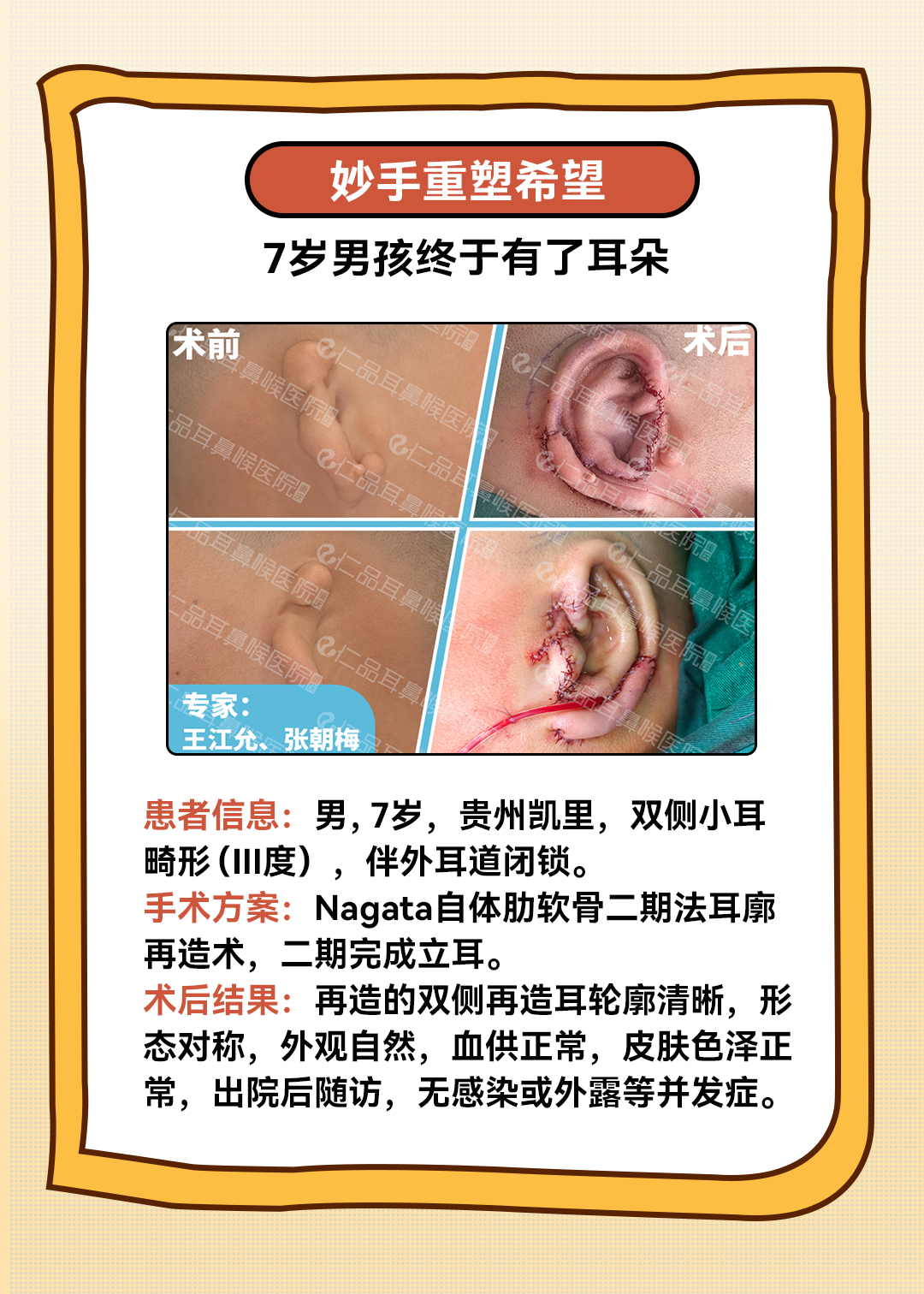 重庆仁品医院使用的是目前国际、国内主流的“二次法耳廓再造”,再造的耳朵形态逼真,而且有血供、有感觉,真正做到兼顾外形逼真和功能性。